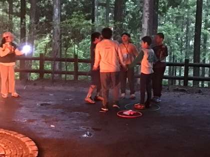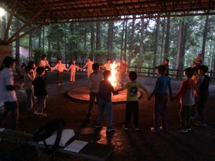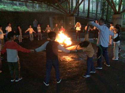 キャンプファイヤースタートです。 中部小の出し物で大盛り上がりです。