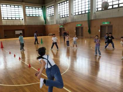 交流レク2 中部小の企画の王様ドッジです 元気に逃げ回って?ます 司会は走り回ってます