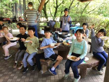 「カレー作りで火が燃えキャンプファイヤーを思い出しました。おいしかったです」