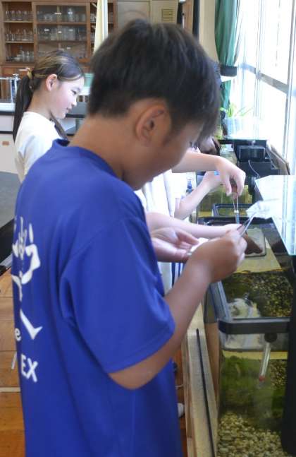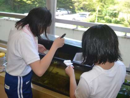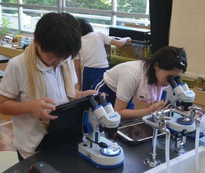 6年生の理科では、「からだのつくりとはたらき」の単元で、メダカの尾びれを顕微鏡で観察する学習を行いました。ふだんは目に見えない世界をのぞき込むこの体験に、子どもたちは目を輝かせていました。