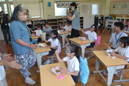 白杖や点字ブロック、盲導犬の役割などの具体的な話を聞くことができ、子どもたちは視覚に障がいがある方を支える道具やしくみへの理解も深めることができました。「知らなかったことがたくさんあった」「困っている人がいたら声をかけたい」といった声が自然と上がっていました。