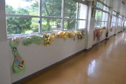 7月8日(火)・9日(水)のフリー参観では、この作品展もぜひご覧ください。子どもたちの創造力にふれながら、「どれがうちの子のかな?」と探すのも楽しいひとときになりそうです。廊下がちょっぴり晴れ空のように感じられる、そんな素敵な展示になっています。