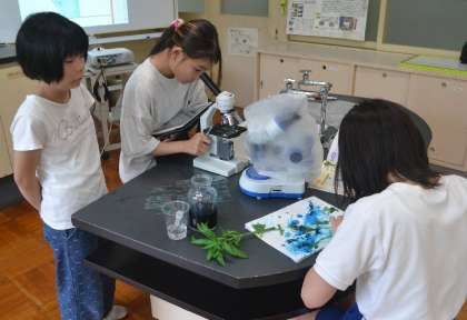 6年生は理科の授業で「植物の水の通り道」について実験・観察を行いました。ホウセンカの茎や葉の切片を、自分たちの手で慎重に作成。プレパラートづくりはまるで職人の仕事。均一で薄く、美しく仕上げるには根気と集中力が必要ですが、子どもたちは何度も挑戦し、見事な切片を完成させました。