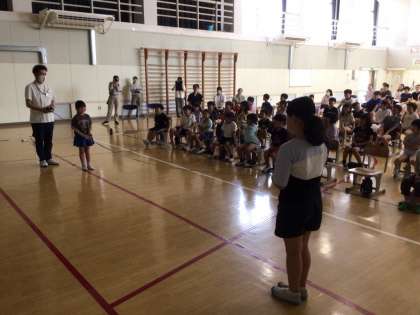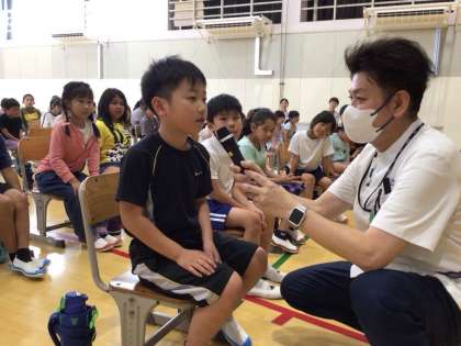 子どもたちは、保護者の皆様が見守る中で、クイズやストレッチなども交えて楽しく学ぶことができました。自分の日々の生活習慣を振り返る貴重な機会となりました。