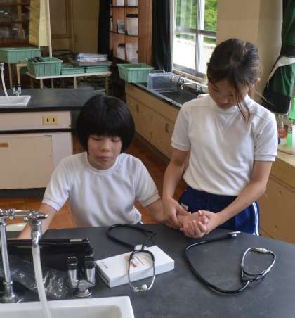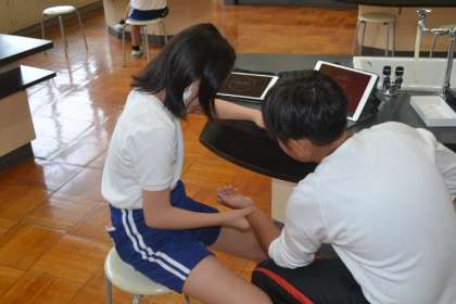 🖐️さらに、手首の太い血管に指をあて、1分間の脈拍数を測定。心臓の拍動と脈拍の関係性についても理解を深め、「脈は心臓の動きが伝わっているんだ」と驚きをもって学びを整理していました。「心臓の拍動」や「脈拍」といった用語について、辞書的な定義だけでなく、体験を通じた実感を伴ってとらえることができました。