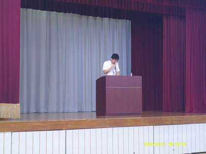 夏休み明け集会が体育館で行われました。元気よく朝の挨拶を交わした後、校長より、不安な事などがあったら一人で悩まずに相談して欲しい、という話がありました。