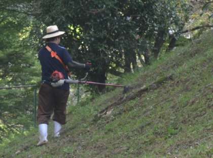 会長のていねいな役割分担の指示のもと、保護者の皆様は一致団結し、校内の草刈り作業にご尽力くださいました。