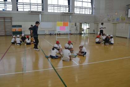 3・4年生の体育では、ポートボールのゲームをよりよく攻防するために、チームごとに作戦を立てて実行する活動が行われました。子どもたちは、ただボールを追いかけるだけでなく、「どうすれば仲間と協力して勝てるか」「どんな動きがチームにとって効果的か」を真剣に話し合い、作戦を練りました。