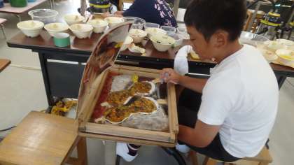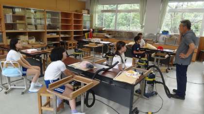 9/9 和紙作品を完成させた6年生 2