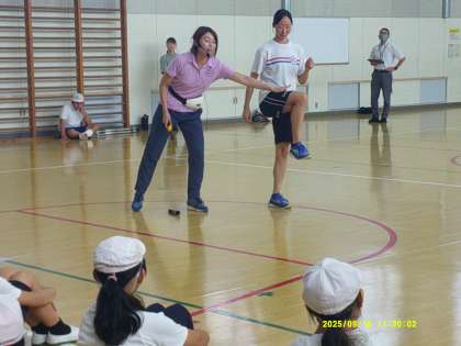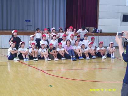 子どもたちは、笑顔で体を動かしながら、真剣に取り組んでいました。最後には、講師の先生方と一緒に記念写真を撮り、楽しく充実した時間を締めくくりました。