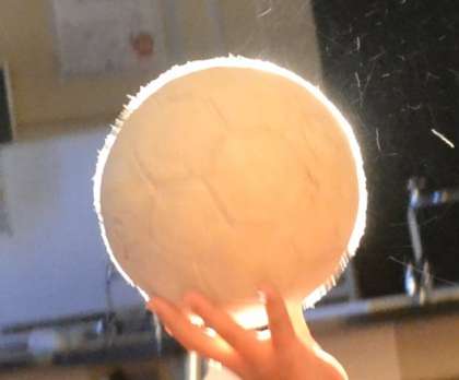 地球から見える月の形の変化と、宇宙空間から見た太陽・地球・月の位置関係を関連づけて考える力を育てるための、実際にボールと光源装置を使った実験です。