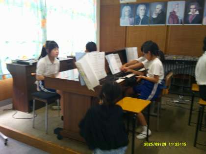 活動の中では、4年生が3年生の指使いを優しくチェックする場面もあり、学年を越えた温かな関わりが見られました。音楽を通して、互いに学び合う姿がとても素敵です。