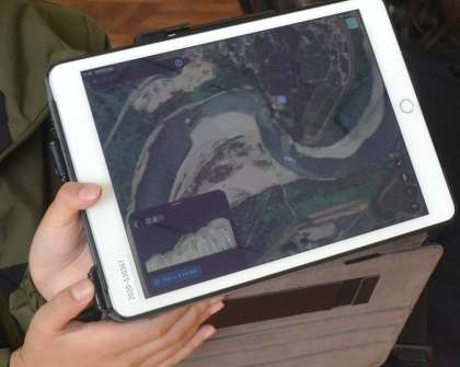 子どもたちは、地図ソフトを使って日本各地の川や地形を調べ、カーブの内側と外側で土地の形がどう違うか、扇状地や三角州がどこに見られるかを自分たちで探しました。見つけた場所はスクリーンショットで記録し、その特徴を仲間と共有。地図上の色や形、周囲の地名などから、どんな自然の力が働いているのかを考察する姿が見られました。