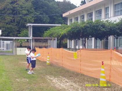 3つのグループに分かれた子どもたちは、校内を探検しながら、教師の写真と同じ場所やものを見つけて撮影。撮った写真をトリミングして、ビンゴのマスに貼り付けていきます。活動時間は20分。どのグループも協力しながら、全員が見事にビンゴを完成させました!