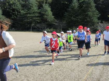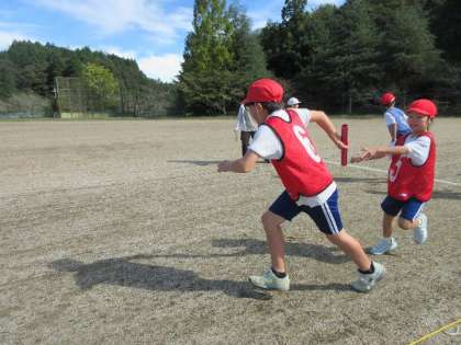 10月6日、秋晴れの空の下、運動会に向けたリレー練習が行われました。まずは教師の後について走りながら、コースの確認。カーブの位置やバトンの受け渡し場所など、細かなポイントを一つひとつ丁寧に確認しました。