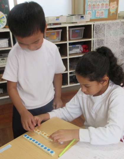 算数の授業では、1年生が「ミニ先生」になって友だちに教える活動に挑戦しました。自分ではわかっていても、「どう伝えればわかるかな?」「答えじゃなくて、やり方を教えるって難しい!」と、教える側の難しさを実感する場面もありました。それでも、仲間の隣に寄り添いながら、丁寧に説明しようとする姿がとても印象的でした。