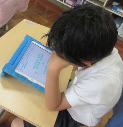 また、算数の学習ではAI教材「キュビナ」を活用する場面も増えています。1問ずつすぐに正解がわかるしくみは、子どもたちのやる気をぐんと引き出し、宿題にも集中して取り組む姿が見られます。さらに、AIが一人ひとりの苦手を把握し、その子に合った問題を出してくれるため、自主学習にも大きな力を発揮しています。
