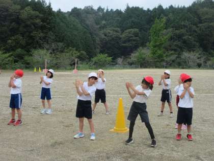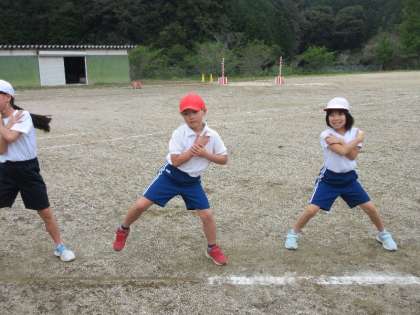 運動会に向けて、1〜3年生が「チグハグダンス」の練習に取り組んでいます。今回は、初めて運動場での練習。体育館よりも広い空間に、子どもたちは少しドキドキしながらも、立ち位置や間隔を確認し、広さに合わせた動き方を一生懸命に調整していました。