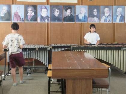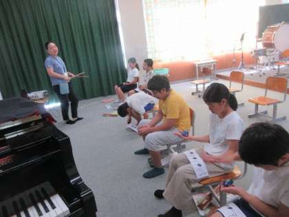 5年生の音楽では、リズムを言葉に置きかえてカスタネットをたたく活動に取り組みました。
