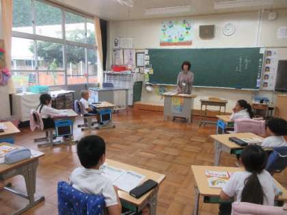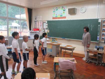 10月14日から、1年生の教室に新任教員が加わりました。授業のはじめには、教師と子どもが一人ずつ自己紹介をし合い、名前や好きなものを伝え合いました。「ぼくは虫が好き!」「わたしはお花が好き!」と、笑顔いっぱいのやりとりが広がり、小原の自然の話題でもすっかり打ち解けた様子でした。
