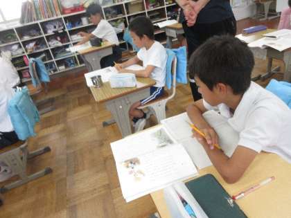 絵を見て「3輪」と答える子もいれば、「何輪もあった」と感じた子もいました。正解がひとつではない問いに対して、自分なりの考えを持ち、友だちと意見を交わす姿が見られました。国語の学びは、文章から答えを導くだけでなく、心で感じ、考えを広げることも大切です。