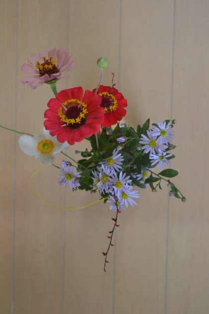 10月14日から半月の間、1年生の授業を担当するため、新しく着任した教員が、可憐な切り花の花瓶を教室に持参しました。ピンクや赤、紫など色とりどりの花々が並び、教室の空気がふわっと華やぎました。
