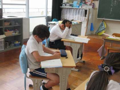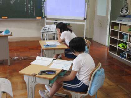 「です・ます」といった丁寧語には慣れていても、尊敬語や謙譲語は少し難しく感じるようで、タブレットを使って調べたり、友達と相談したりしながら、言葉の使い方を確かめていました。