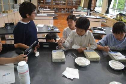「まだ溶けるかな?」「ちょっと時間をおいてみよう」と、試行錯誤を重ねながら、粘り強く検証を続ける姿はまさに“若き研究者”。時間のかかる実験にも集中して取り組み、科学的な思考力と協働する力を育む貴重な学びとなりました。