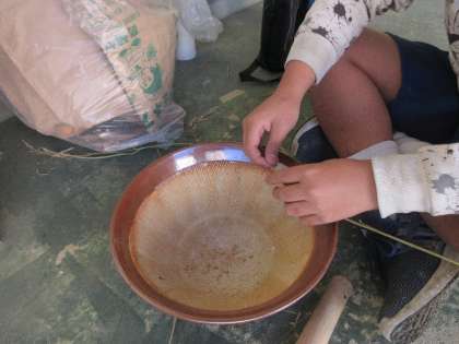 子どもの中から、「機械でやるとただ入れて待つだけだけど、手作業でやるともっといい方法はないかって考えることができる。それでいろいろな方法を試して、いい方法が見つかる。昔の人もそうだったんだろうね。」というつぶやきが発せられました。自分の手でやってみることで、知識だけでなく“気づき”と“感謝”が育まれた貴重な体験となっています。