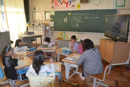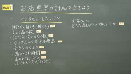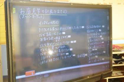 3年生の社会科では、地域のお店を訪問する校外学習に向けて、計画づくりが始まりました。教室では「どんなことを聞いてみたい?」「どんな工夫があるのかな?」と、子どもたちが意欲的に意見を出し合いながら、インタビュー内容や見学のポイントを話し合っています。