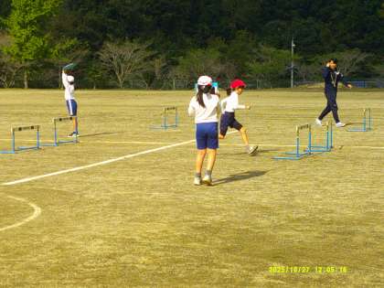 3・4年生は体育の授業でハードル走の練習に取り組みました。