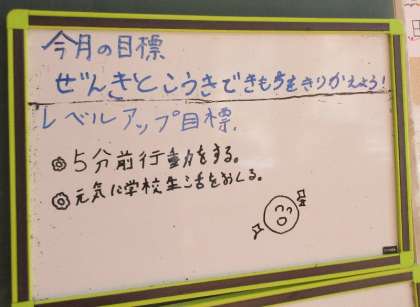 今週の目標は、「5分前行動」「元気に学校生活をおくる」に決定!