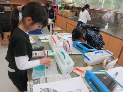 3・4年生の図工では、読書感想画の制作がいよいよ完成に近づいてきました。物語の世界を絵で表現するこの活動では、子どもたち一人一人が本の中の印象的な場面を選び、色や構図、登場人物の表情などに工夫を凝らして描いています。