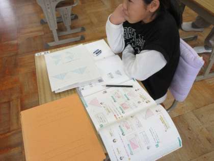 長方形や正方形との違いを比べたり、図を使って確かめたりしながら、三角形の面積が“同じ底辺と高さの長方形の半分”になることに気づいた子どもたち。「なるほど!」「おもしろい!」という声があちこちから聞こえ、公式の“意味”を知ることで、学びがぐっと深まりました。