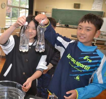 この変化を通して、「二酸化炭素は水に溶ける性質がある」「気体が減ると、圧力も下がる」ということを、実体験として理解することができました。目に見える形で起こる変化に、子どもたちは驚きと興味をもって向き合い、科学的な考察を深めていました。