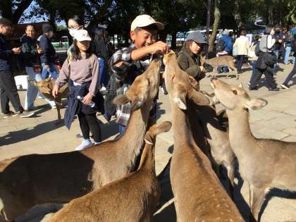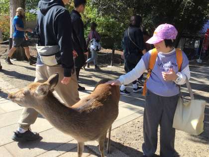 鹿と戯れる