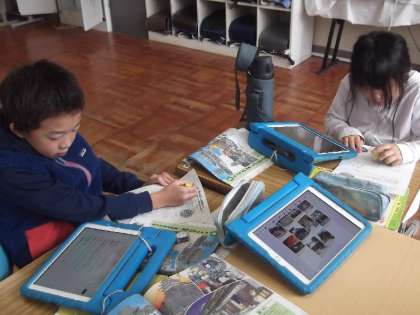 4年生の社会科では、「郷土の伝統・文化」について学習しています。今回は、愛知県にある文化財や伝統行事について、タブレットを使って調べ学習を行いました。
