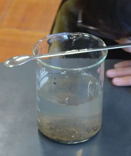 水の中で粒の大きさによって層ができる様子を見ながら、「なるほど、こうなるよね!」「もっと砂を増やしたらどうなる?」といった疑問が次々と出てきました。