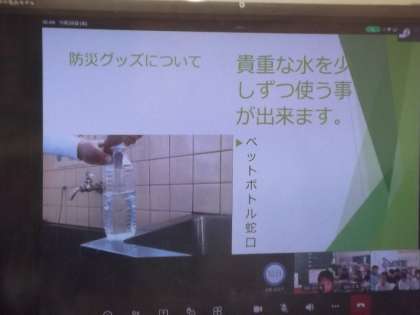本日のオンライン授業では、道慈小学校の子どもたちが調べてきた防災についての発表を聞きました。その中で、防災グッズ、家具の固定、ハザードマップなど、身近で大切な情報がたくさん紹介されました。
