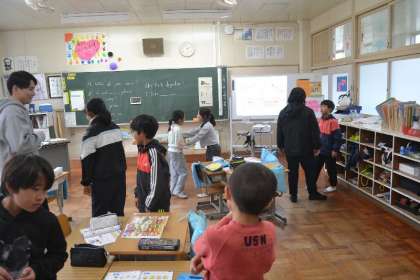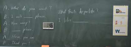 4年生は、ALTの熱心な働きかけのもと、英会話の具体的なレッスンを楽しく行いました。今回の授業では、買い物の場面を想定したやり取りや、好きな果物を尋ねる会話に挑戦しました。