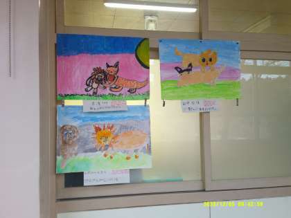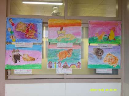 どの作品からも、物語を読んで感じた感動がしっかりと伝わってきます。廊下に並んだ作品は、色鮮やかで見ている人の心も温かくしてくれるのではないかと思います。ぜひ、ご来校の際にご覧ください。