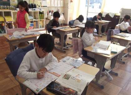 1年生は、漢字ドリルのまだ終わっていないところを確認しながら学習を進めました。これまで習った漢字の復習にもなり、まだ覚えていない漢字をしっかり確認するよい機会となりました。