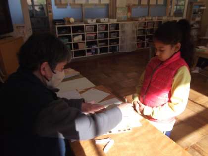 また、書き初めの練習も始まっていることから、字の形やバランスを意識する姿が見られました。「『学校』はきれいに書きたい」と、ていねいに筆を運ぶ子もいました。新しい漢字を覚えることと、美しい字を書くこと、その両方に挑戦する時間となりました。