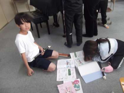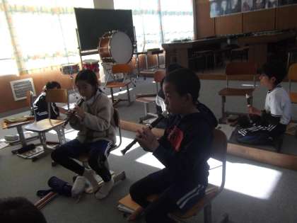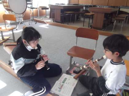 3・4年生の音楽の授業では、リコーダーで「陽気な船長」の練習に取り組んでいます。