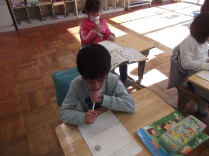 昨日の「おいもパーティー」の楽しかった思い出を、2年生が生活科の時間に振り返りました。教室では、子どもたちが一人一人、自分の感じたことや発見したことを、文章や絵で丁寧に表現していました。