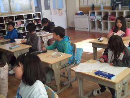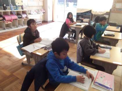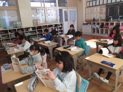 子どもたちは、教科書にある問いの答えを本文から探しながら聞くことに挑戦しました。中には、答えの文に鉛筆で印をつけながら、しっかりと根拠を押さえて読む姿も見られました。