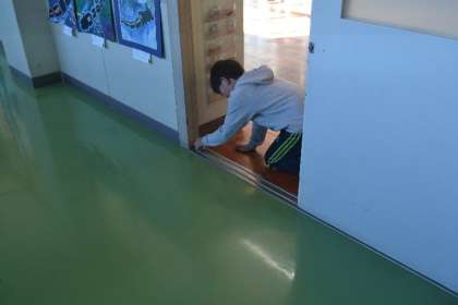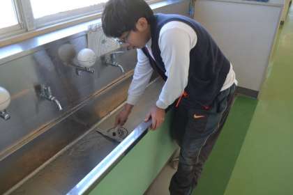ほうきや雑巾を手に、しゃがんですみずみまで掃除する子、窓ふきをがんばる子、みんなの表情は真剣そのもの。掃除を通して、協力する楽しさや、きれいにする達成感を味わっているようです。
