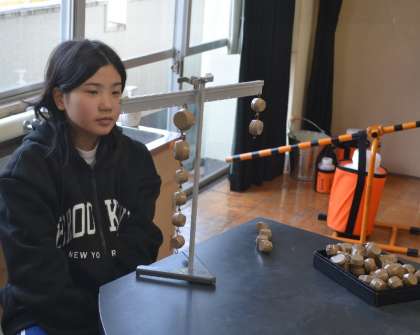 さらに、複数の位置におもりを複数つるして、複雑な数理の世界で、てこの法則を解き明かしていきました。