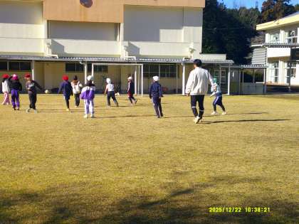 この日ののびのびタイムでは、5・6年生が校外学習のため不在でしたが、校庭には元気いっぱいの声が響いていました。日差しがやわらかく差し込み、少し体を動かすと汗ばむほどの暖かい気候の中、子どもたちは思い思いに活動を楽しんでいました。