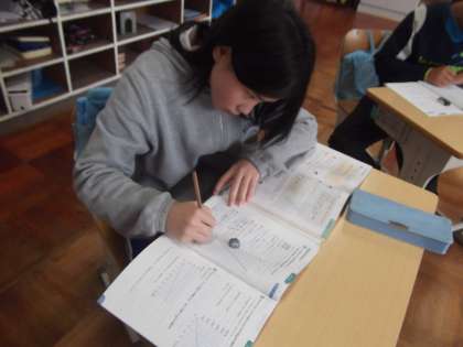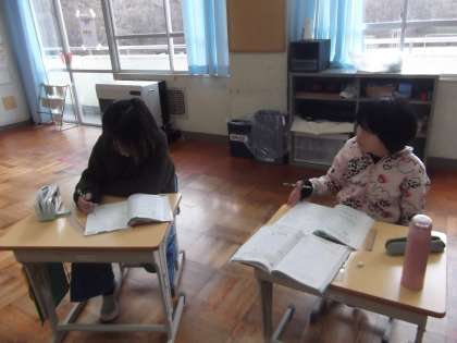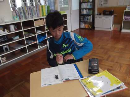 6年生は算数の学習で、比例・反比例の復習に取り組みました。教材「算数の友」を使いながら、一つ一つの問題を公式に当てはめて「決まった数」を見つけていきます。